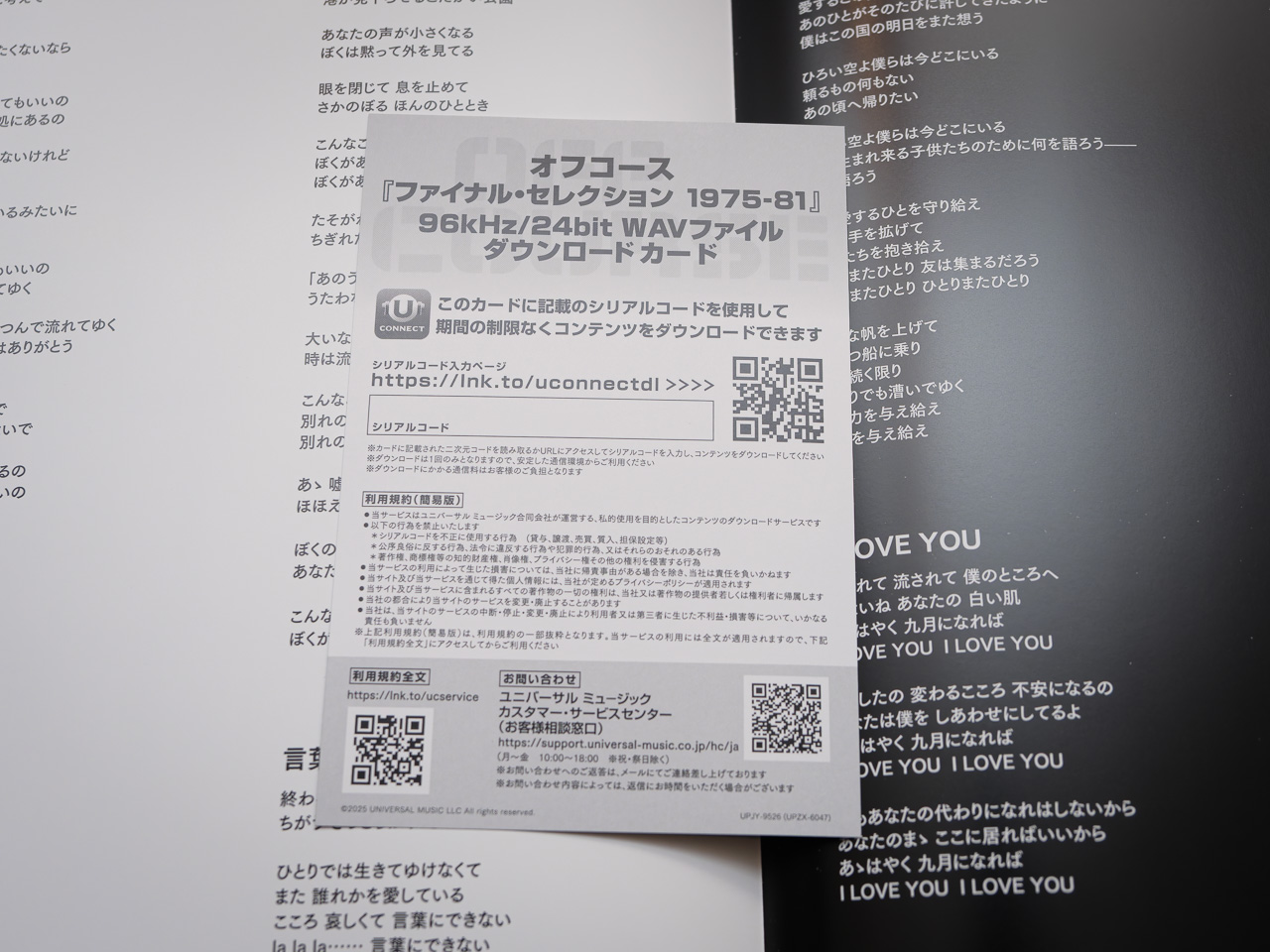 そんなこんなで、オフコースの『ファイナル・セレクション 1975-81』を、今をさかのぼること約1か月前の発売前日にフラゲしておりました。細かい説明はタワレコから引用しておきますね。