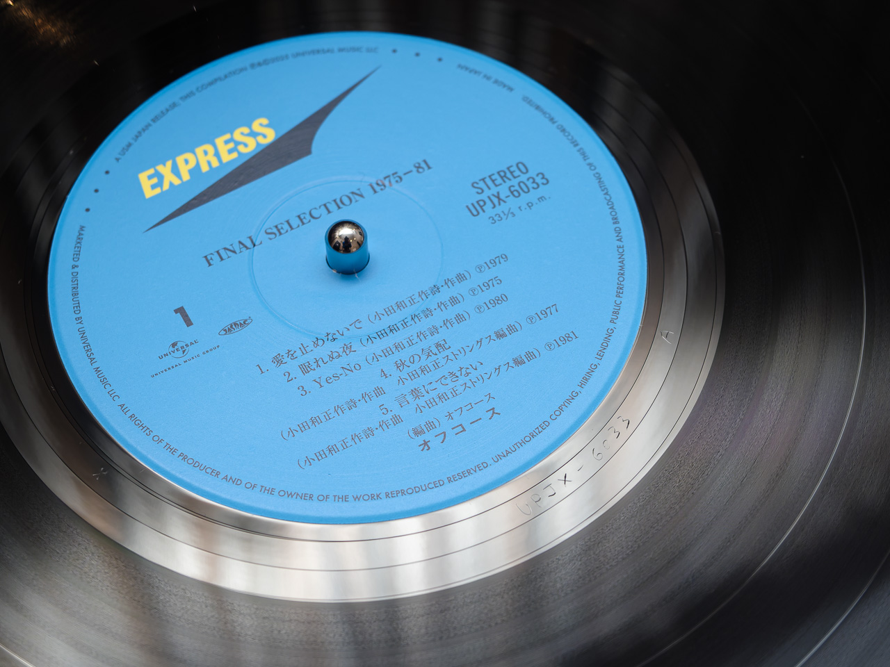 レコードの音質は…やっぱり音が小さい。加えて、曲間の無音部分でゴロゴロ系の周回ノイズが気になる。こういうレコードたまにあるけど、ぼくのレコードクリーニングが原因なんだろうか?(新品レコードでも最初に洗うよね?) で、音が小さいからボリュームを上げる→ゴロゴロ音も大きくなるってことで、バッキングが静かになって小田和正の声がメインになるようなところで気になるんだよなー。「フラットでナチュラルなマスタリング」だという音質は思った以上にアッサリ系。カートリッジをオーディオテクニカのVM700にしているせいもあるかも。んー、レコードならもうちょっと押し出し感みたいなものが欲しいかなぁ。