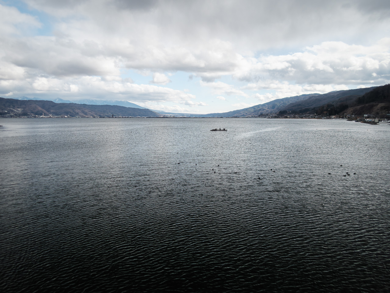 レコードフェアの前に「諏訪湖でワカサギ釣りをする人」の写真を撮りに行った。毎年撮ってると思ってたのに去年は撮ってなかったみたい。今年はお昼やすみ的な時間に行ったのと、天気が良くなかったのとで釣り人の影はまばら。釣れている感じでもなかったし吹雪っぽくなってきたから、遠巻きに眺めて撤収。