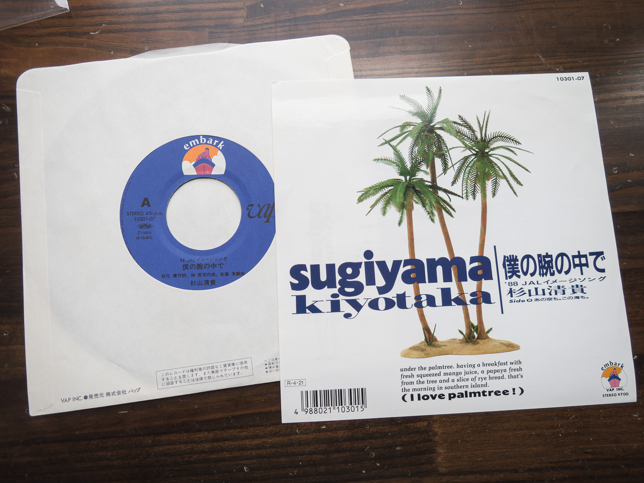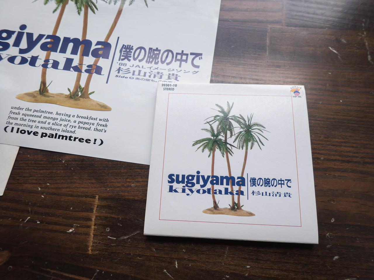 去年と同じ9連休で、去年と同じ2日からのレコードフェアに去年は「もう行かないかも」と書きながら今年も出頭して、杉山清貴の『僕の腕の中で』の7インチシングルを”希少盤”ということで550円でゲットしたのが今年の買い物初め。1988年ころは8cmシングルCDが登場してアダプターを付けて聴いてたなぁと思いながら、当時買った『僕の腕の中で』の8cmシングルをしげしげと眺めてみた。