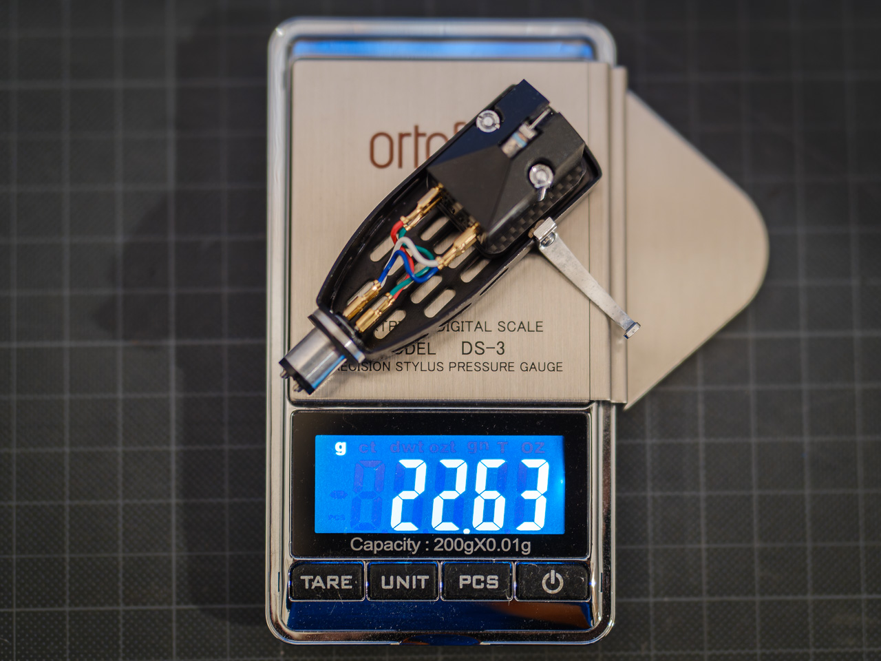 カーボンスペーサー組み込み後の重量は22.63gで1.87gの増加。取り付けねじを長いものに交換した分もあるはずなのに、公称値の1.92gよりも0.05g少ないなー(笑) まぁまぁ誤差でしょう。