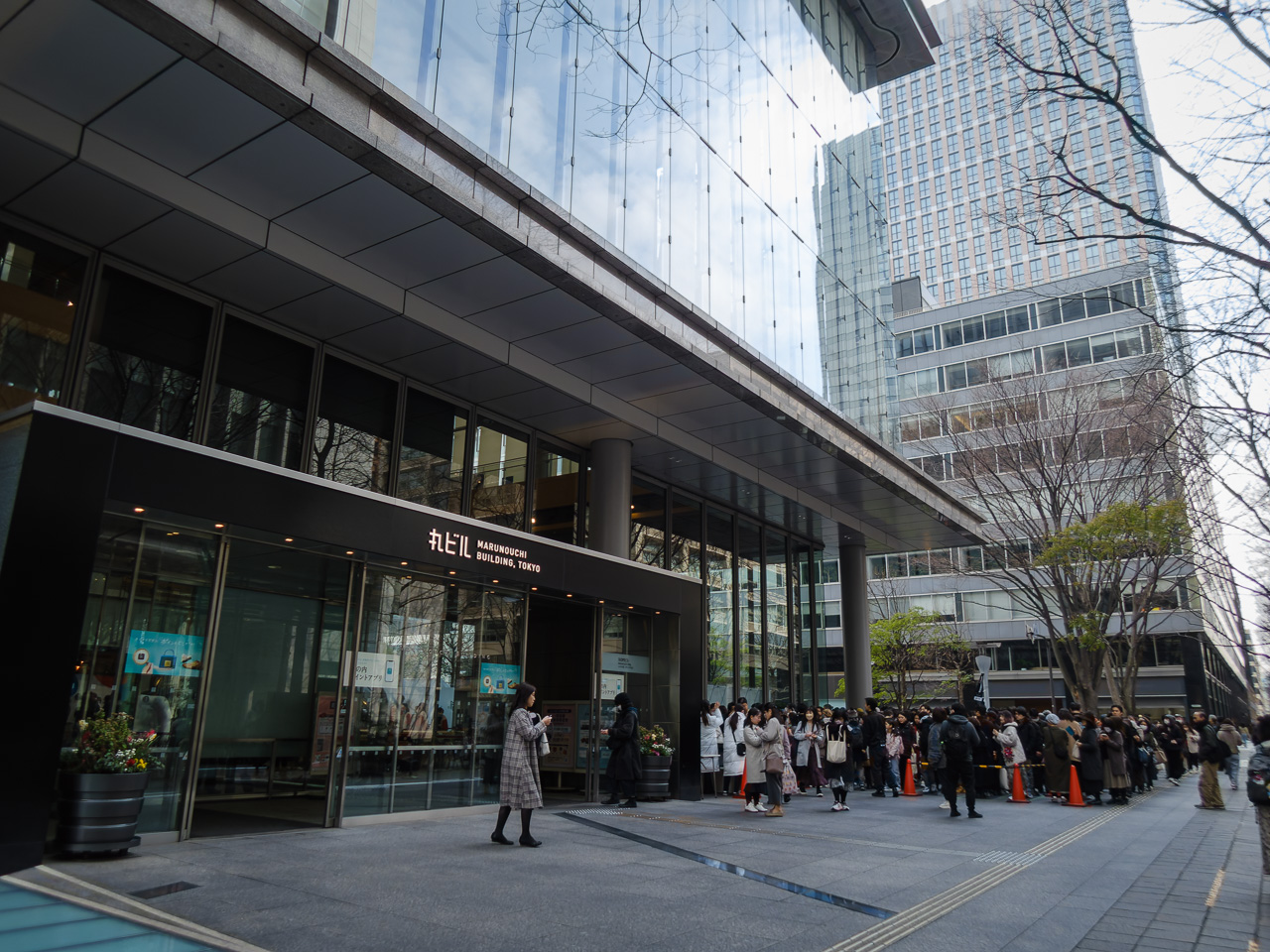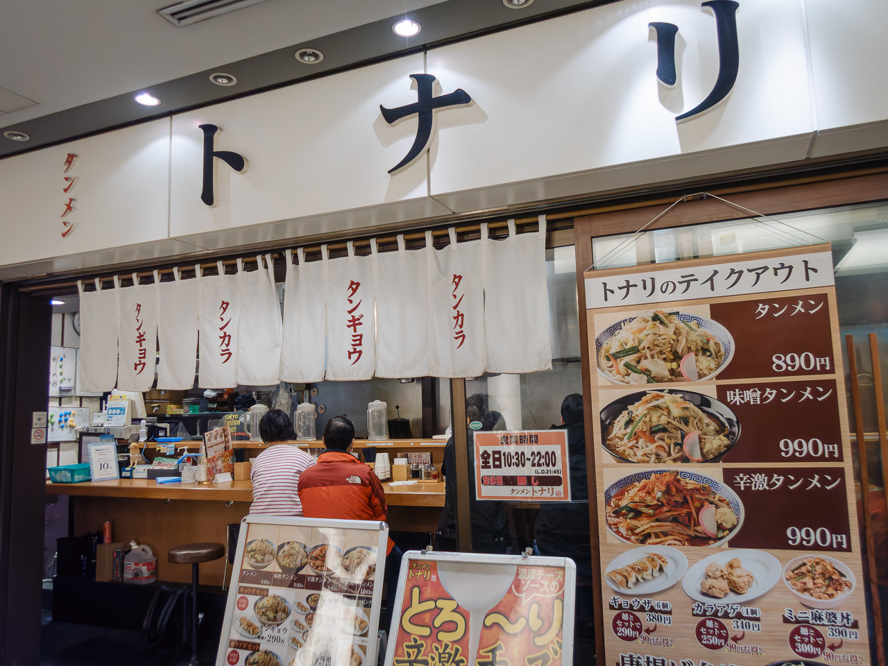 お昼にはまだちょっと早いけど、空いてるうちにってことで、ふたつくらい隣のビルにあるタンメン トナリへGO! 途中KITTEという郵便局がやってるショッピングモールの中を通り抜けたんだけど、そこの各店舗には長い長い行列ができていた。