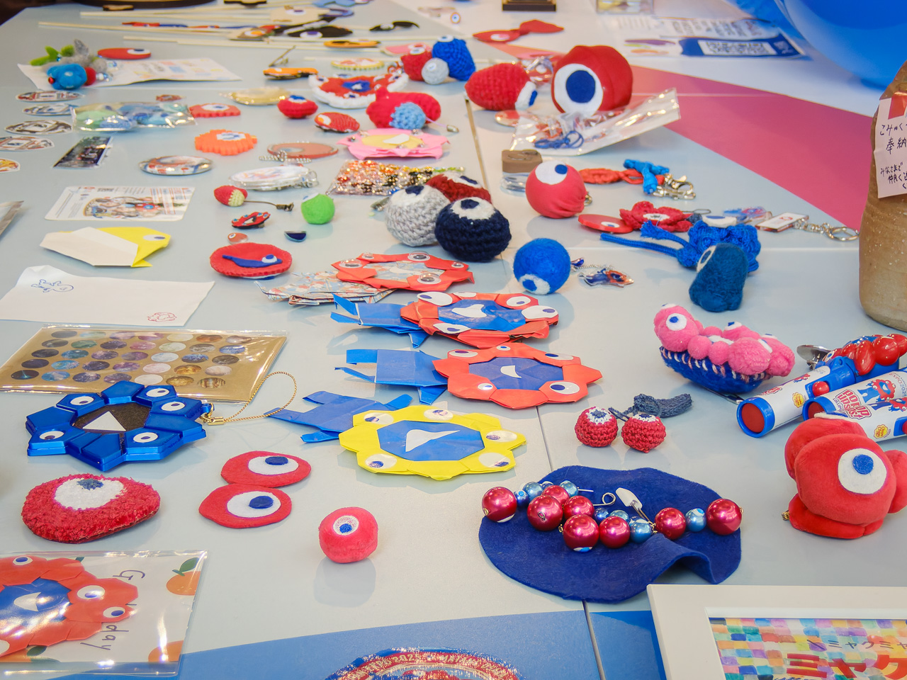 センターにはみんなが作ったミャクミャクのいろいろが集められている。さっきの世界のミャクミャク展もそうだけど、こういう手作りの一点ものが面白いよねー。