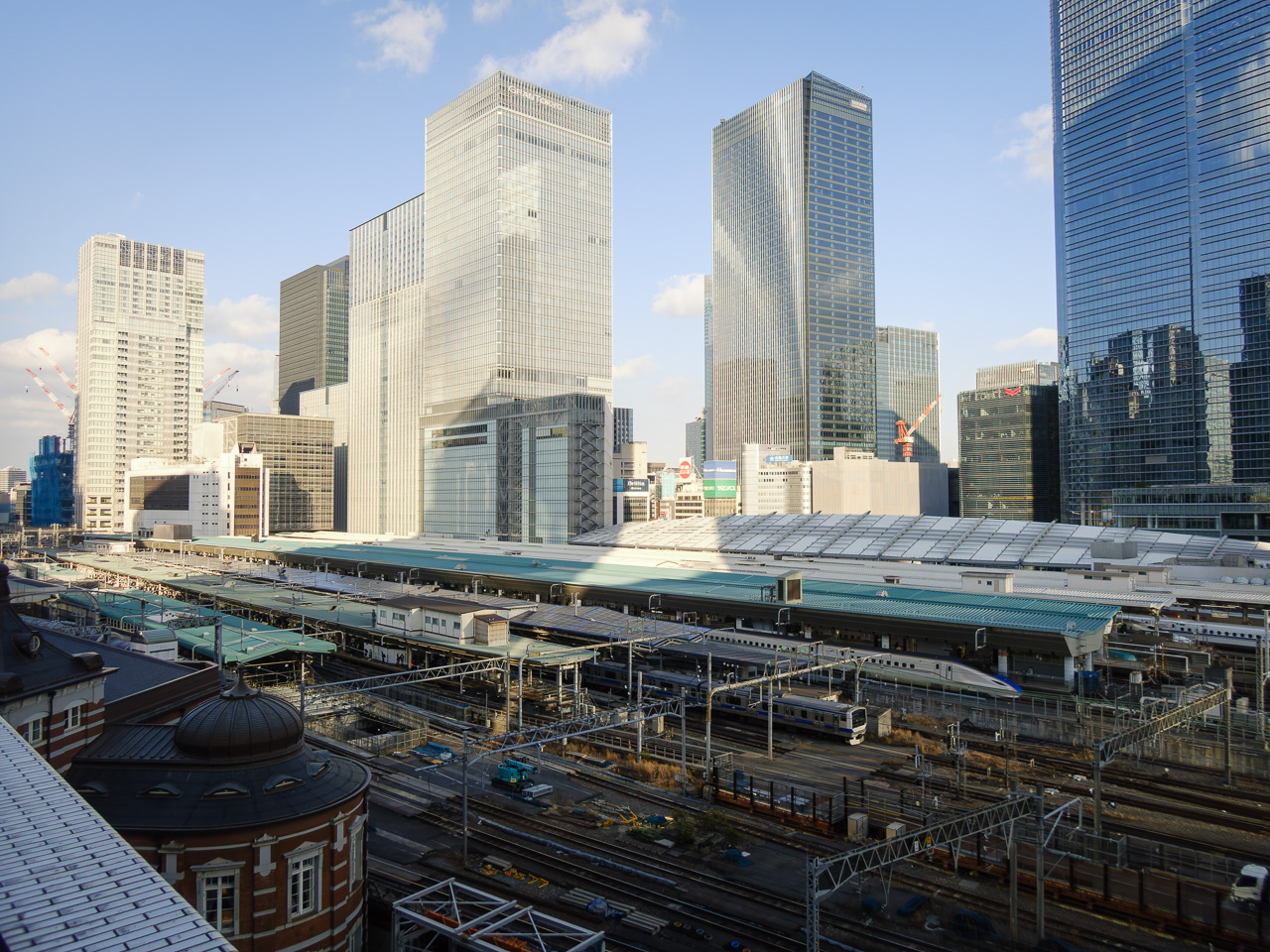 ここは東京駅をちょっと上から眺めることができる穴場(?)スポット。奥に行けば、高層ビルをバックに新幹線や各路線の往来を見ることもできる。東京駅周辺は何度来ても同じ国とは思えない別世界感あるよなー。