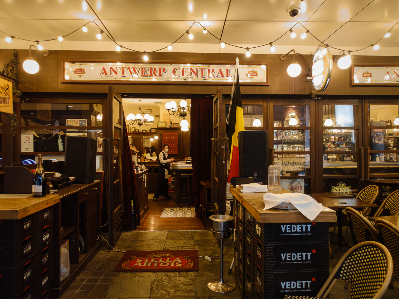 ポップアップストアの入場時間。整理券の番号順に並んで入るも、予想通りほぼ空っぽと言ったら言い過ぎかもしれないが、人気のもの(ぬいぐるみ等々)は売り切れ。せっかく来たから残ったものの中から、黒ミャクのキーホルダーを買って離脱。「タンメン トナリ」の近くにあるアントワープ セントラルへ、ベルギービールを飲みに行くぞ! 16時50分くらいに入店して、17時からディナーメニューになるという説明に負けず、ビールとポテトをオーダーする。