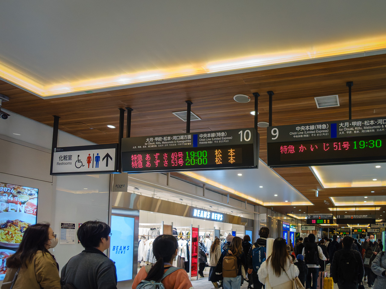 車窓から富士山を眺めつつ、新宿の再開発をかすめつつ、終点の東京に到着したのは午前10時くらいのことじゃったー。前回よりも人が多い。大きなスーツケースゴロゴロ組もそこそこ。