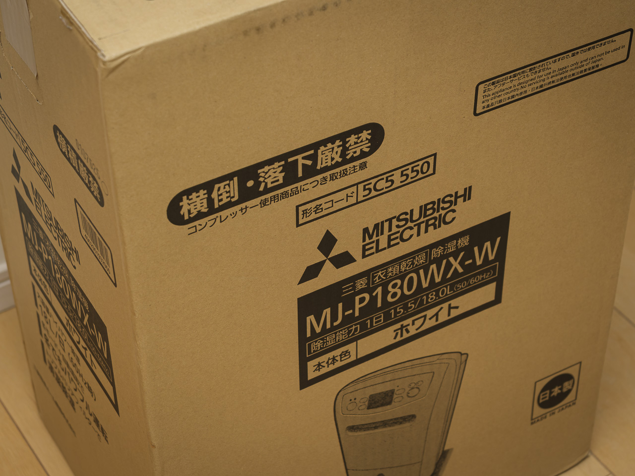 去年の11月に除湿器が壊れて修理に63,000円かかるといわれて廃棄したまま、冬場の洗濯物の乾燥は「リビング → 吹き抜け → 2階踊り場(物干し場) → 階段 → リビング」というFF式石油ファンヒーターによる対流と扇風機でしのいでまいりましたが、タオルの”耳”に生乾き臭が発生したことをきっかけに、三菱電機の家庭用衣類乾燥除湿機「MJ-P180WX」を購入せしめました。