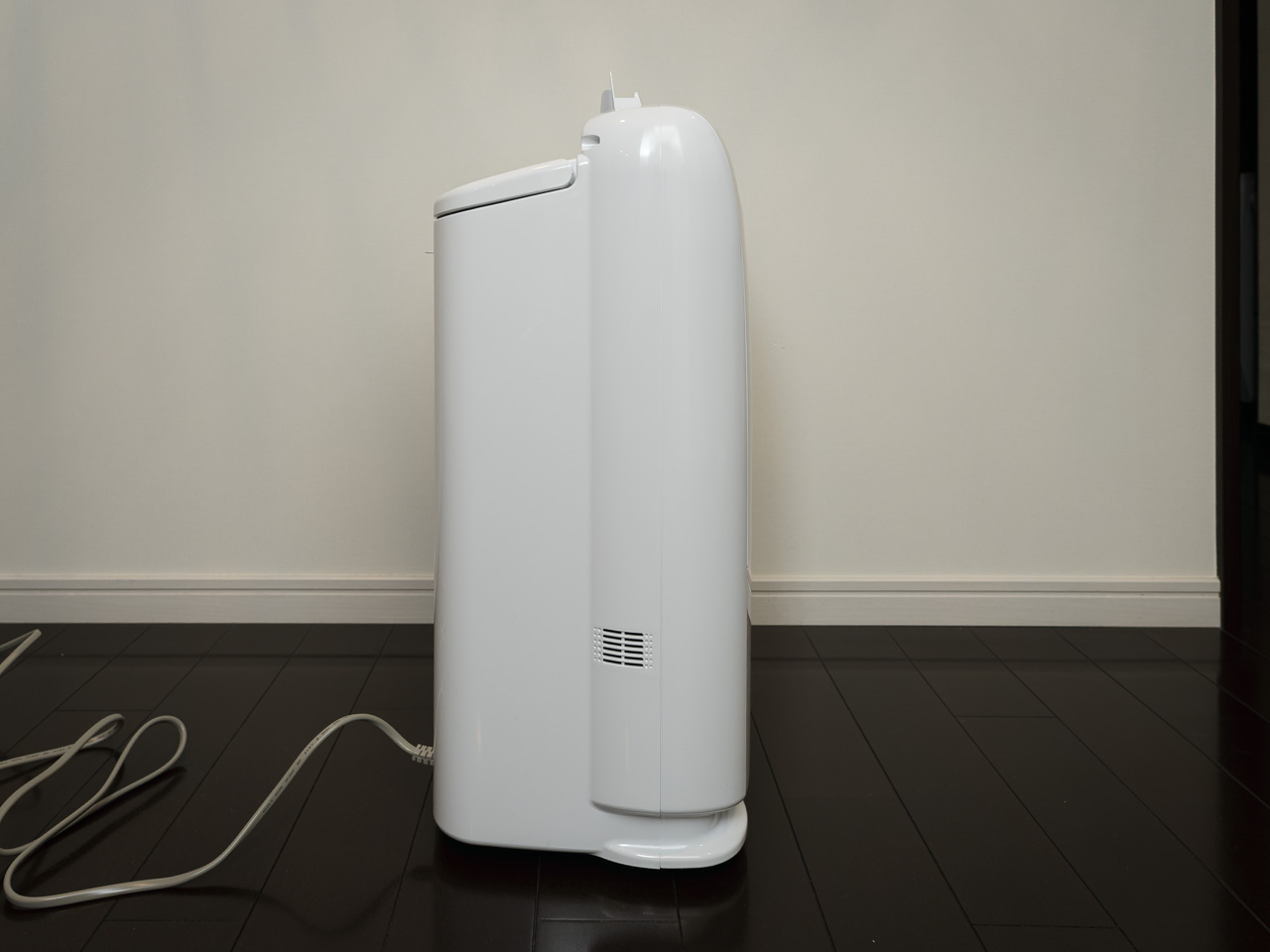 箱から取り出してみると今までのものよりもひとまわり大きい。特に厚みは8cmくらい増えている。全体的に丸みを帯びたデザインは、いいのかそうでもないのかよくわからない。排水タンクは大きくなっていて、前面カバーもタンクの一部になったからオペレーションは良さそう。